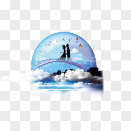 水彩画风七夕拱桥上的古风情侣免抠元素