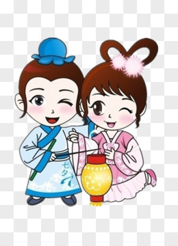 七夕情人节之手绘卡通神话牛郎给织女带花