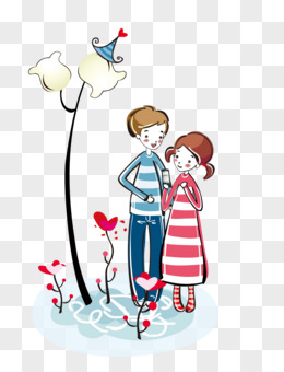 恩爱情侣坐一起弹琴看书手绘插画元素
