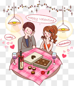 手绘卡通男生为女生下厨做西餐场景插画免抠元素