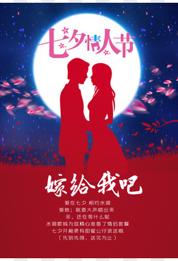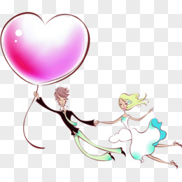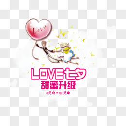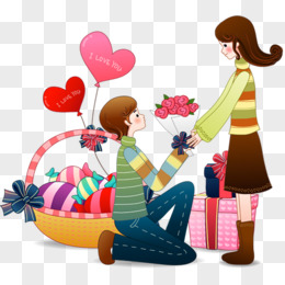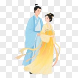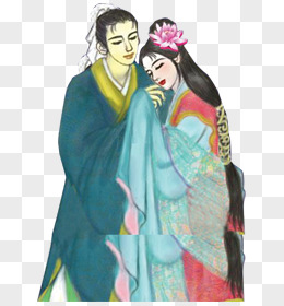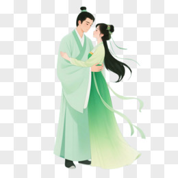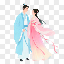 卡通风七夕一对爱心丝带围绕的古风情侣免抠元素