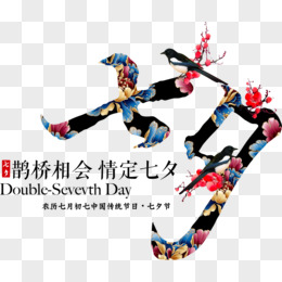七夕情人节快乐情侣牛郎织女喜鹊爱心树枝月亮渐变