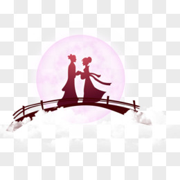 手绘牛郎织女鹊桥相会场景免抠元素