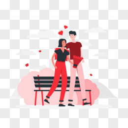 插画风情人节男孩送女孩花场景元素