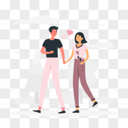 卡通情侣接吻手捧鲜花免抠素材