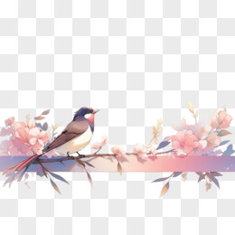 植物鲜花和喜鹊边框免抠元素