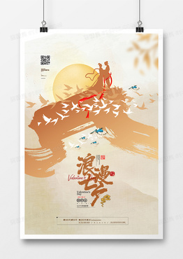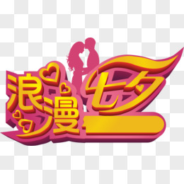 浪漫毛笔七夕情人节牵手七夕字体设计