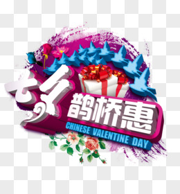 3d立体紫色渐变七夕鹊桥惠艺术字创意设计