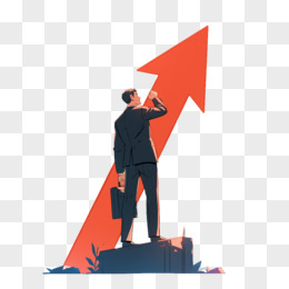 插画一个提着公文包的男人和向上的红箭头免抠元素