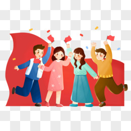 卡通手绘小学生蹲在一起庆祝国庆节免抠元素