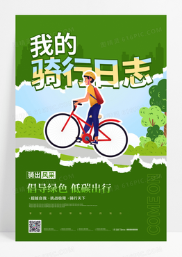 绿色卡通我的骑行日志运动海报