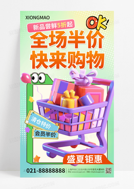 夏季促销全场半价打折五折折扣促销海报