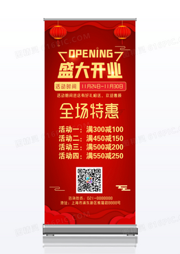 红色灯笼背景盛大开业全场特惠促销展架新店开业展架设计