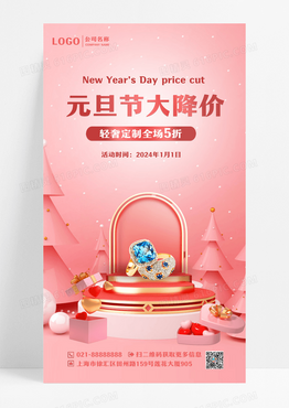 粉色大气元旦节大降价珠宝定制手机海报设计