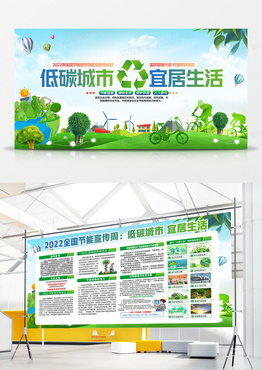 绿色卡通全国节能宣传周全国低碳日宣传栏