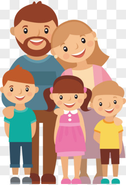 手绘插画风一家四口席地而坐合影全家福其乐融融元素