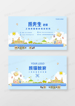 蓝色卡通少儿文化教育名片