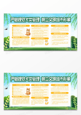 绿色卡通严格规范犬类管理树立文明城市形象文明养犬宣传栏设计