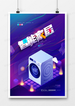 创意25d智能家居洗衣机海报设计