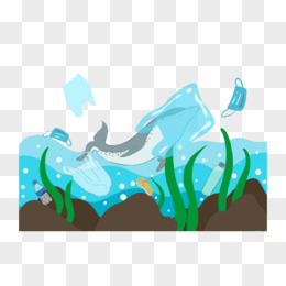 手绘卡通海洋被垃圾及废水污染免抠元素