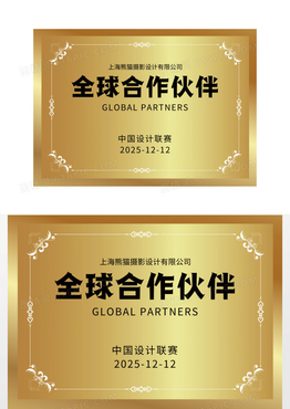 金色简约合作伙伴铜牌全球合作伙伴荣誉证书