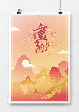 一组手绘国潮剪纸风山峦山峰套图系列三素材