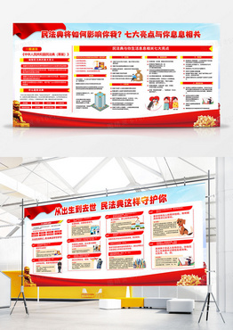大气红色时尚党风党建中华人民共和国民法典七大亮点解读宣传栏