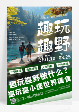 绿色实拍趣玩趣野自然夏令营宣传海报