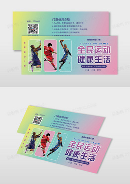 渐变色扁平风手绘插画多边形风格剪影运动健康生活运动门票入场券