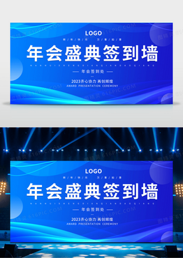 大气蓝色科技感城市建筑物曲线2021年会盛典签到墙展板设计