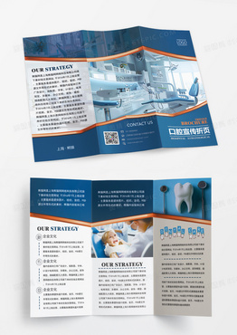 蓝色简约斜拼曲折口腔医疗三折页医疗爱心三折页