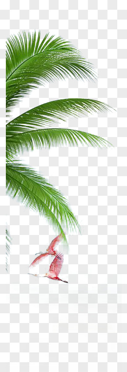 手绘插画风绿色精美热带植物棕榈叶免抠素材