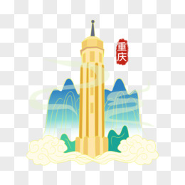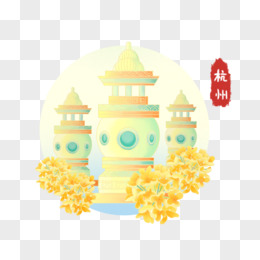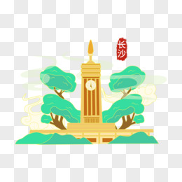 手绘国潮风城市建筑地标长沙爱晚亭素材