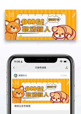 黄色简约卡通汪星人职场新人公众号封面配图图片