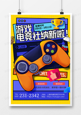 孟菲斯风格大学社团电竞社招新啦海报设计