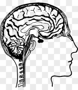 插画蓝色人的轮廓中的发光大脑免抠元素