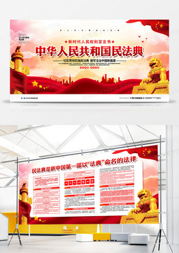 水彩简约党建中华人民共和国民法典宣传展板设计