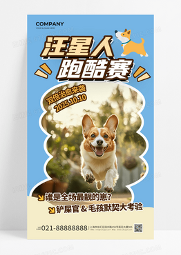 蓝色汪星人跑酷赛秋季宠物活动创意海报