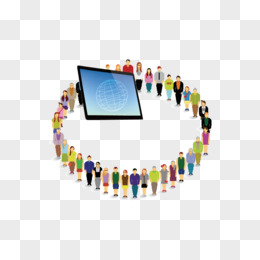 平面插画一个白色机器人拿着屏幕站在屏幕前讲课下面坐着一排人免抠元素