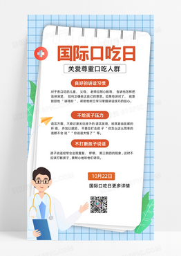 卡通手绘国际口吃日关爱尊重口吃人群手机海报UI