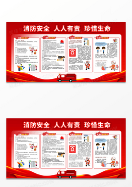 红色简约消防安全人人有责防火常识119安全意识宣传栏