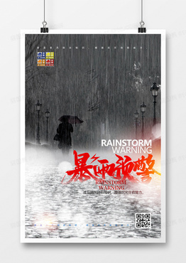 简约暴雨预警公益海报暴雨预警海报设计