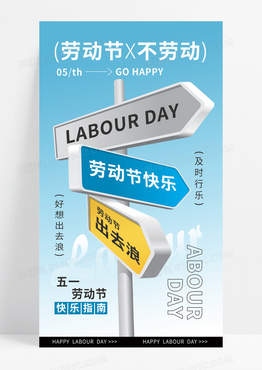 蓝色劳动节不劳动路标路牌立体简约海报海报图片素材