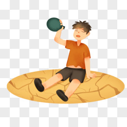手绘卡通缺水的人躺在干旱沙漠上免抠素材