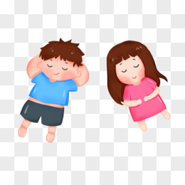 卡通手绘两个小孩躺草地睡觉免抠素材