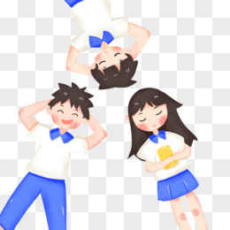手绘卡通草地上躺着的男孩女孩免抠素材