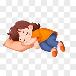 卡通手绘男孩躺蓝色垫子上睡觉免抠素材
