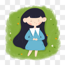 手绘卡通躺在草地上的女孩插画免抠元素