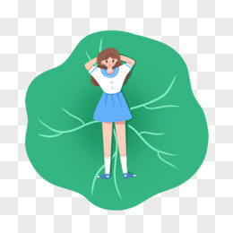 卡通手绘夏日女躺在荷叶上免抠元素