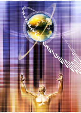 创意抽象人体与地球科技背景高清